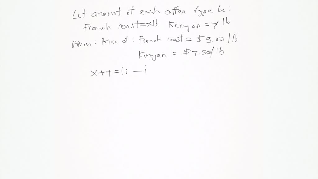Solved The Owner Of The Daily Grind Coffee Shop Mixes French Roast Coffee Worth 9 00 Per Pound With Kenyan Coffee Worth 7 50 Per Pound In Order To Get 10 Lb Of